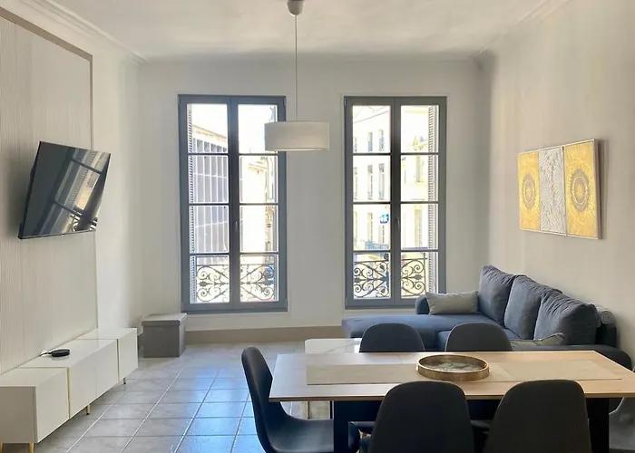 Ces propriétés Le Chapelier - Appartement dans l'éccuson Nîmes de 90 m² est situé au centre de Nîmes, à 5 minutes de marche d'Ecole des beaux Arts de Nimes.